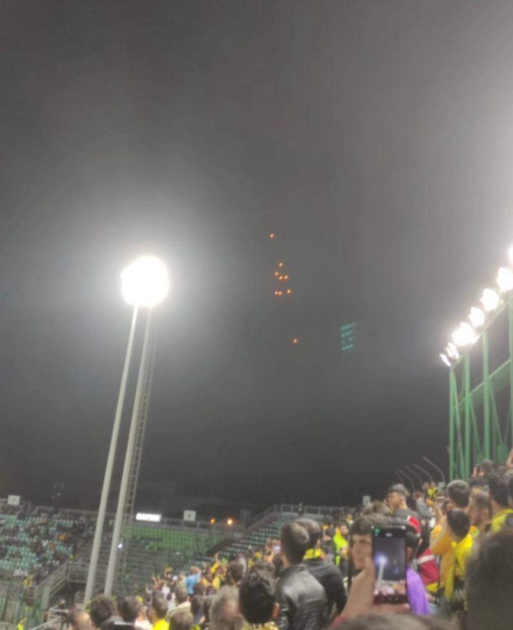 در جریان این بازی، تصویری از موشکهای ایران به سمت اسرائیل بر فراز ورزشگاه فولادشهر اصفهان منتشر شده است.